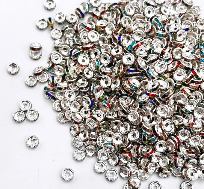 Намистини Розділювачі зі Стразами / -6 мм / Упаковка 40-45 шт / Срібло Мікс