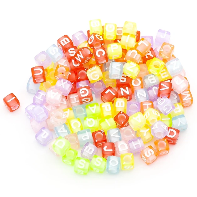 Намистини пластикові з білими літерами англійського алфавіту квадратної форми 6х6 мм 25 г +-140 шт Різнокольоровий (БП0606д5