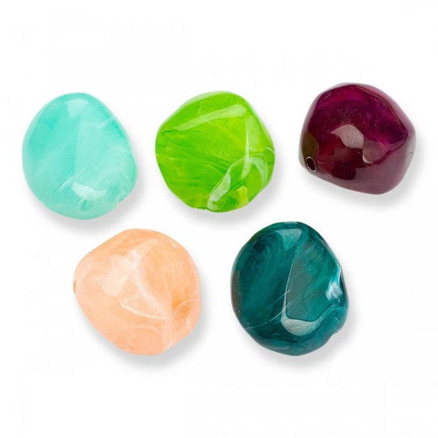 Намистини Акрил Імітація Натурального Каміння, Шматочки, Мікс, 25x24x17мм, Отвір 3мм, 5 шт