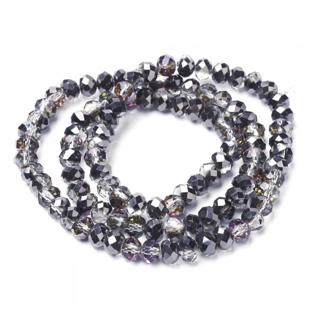 Намистини Гальваніка Скло, Грановані, Напівпокриття, Рондель, Чорний, 6х5мм, Отвір: 1мм, 81шт/39см/нитка
