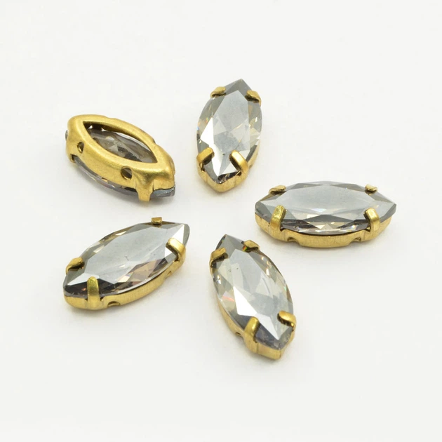 Шатон човник Кубічний цирконій 15х7 мм, Золото, Сірий, 1 шт (KAB-041772) Polimex