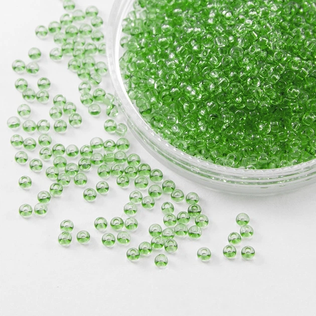 Бісер 01161 Чеський Preciosa 10/0, Прозорий Солгель Пофарбований CSD, Зелений, Круглий, 50 г