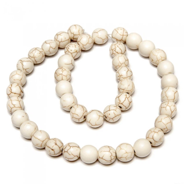 Намистини Синтетична Бірюза Круглі, Білі, 8мм, Отвір 1мм, близько 45шт/40см/нитка