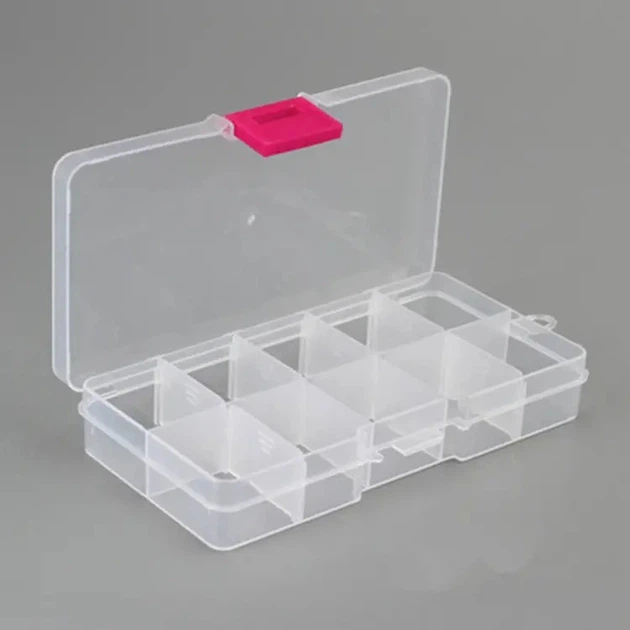 Органайзер контейнер на 10 комірок 12,8 *6,5 *2,2 см для бісеру, намистин, страз, біжутерії для рукоділля, контейнер прозори