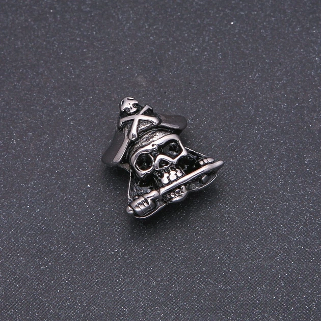 Фурнітура намистина вставка, товщина Steel в стилі пандора Піратський Череп 17х22мм, діаметр внутр. 8мм сріблястий метал, id