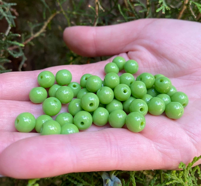 Скляні бусини / Упаковка 50гр / 70 шт / 8мм / Салатовий