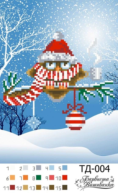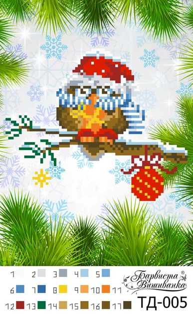 Схема для вишивки бісером Барвиста Вишиванка Добрий ранок (Серія: Новорічні сови) А5(15х21) (ТД004ан1521)