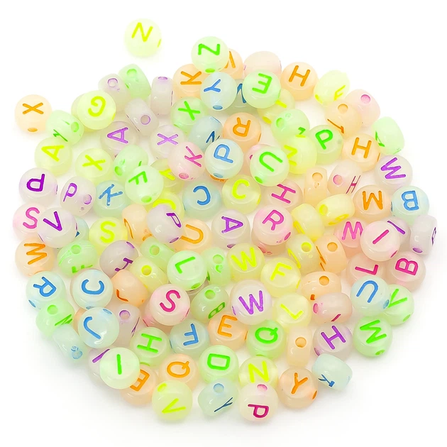 Намистини пластикові у формі таблетки літери англійського алфавіту 7х4 мм 25 г +-190 шт Люмінісцентні (БП0704т08)