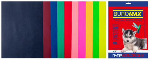 Набір кольорового паперу Buromax А4 80 г/м2 Dark + Neon 20 аркушів 10 кольорів (BM.2721020-99)
