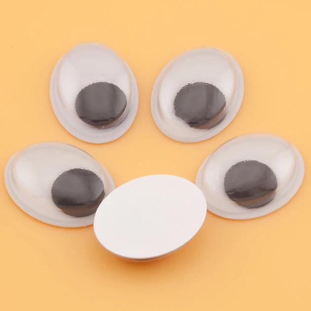 Очі для іграшок бігаючі клейові овальні пластикові 12х16 мм 50 шт Білі з чорним (ГБ1216о02)