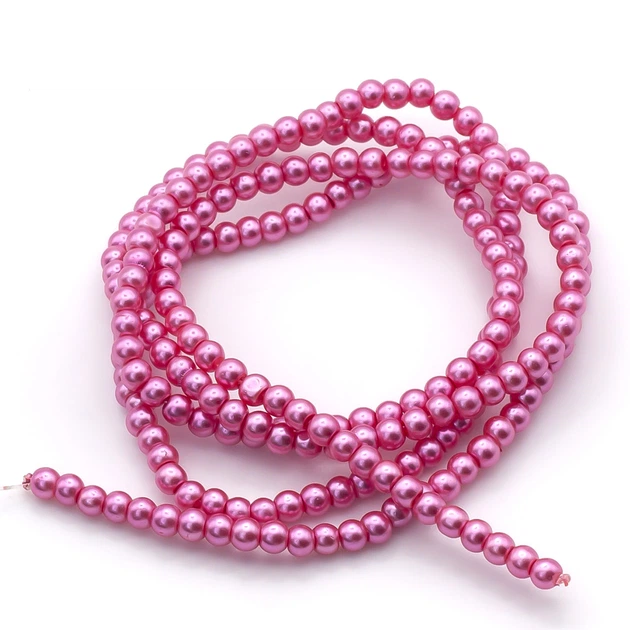 Намистини скляні на нитці під перли 3 мм 62 см (+-215 шт.) Рожева іриска (БЖ0003к90)