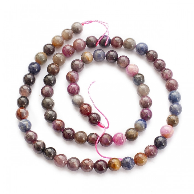 Намистини Натуральний Червоний Корунд/Рубін і Сапфір, на Нитках, Круглі, 6мм, 64шт/38.5см/нитка