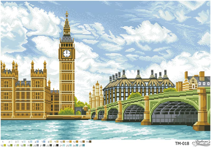 Набір для вишивки бісером Барвиста Вишиванка Велике серце Британії (Лондон, центр міста) 64х43 (ТМ018ан6443k)