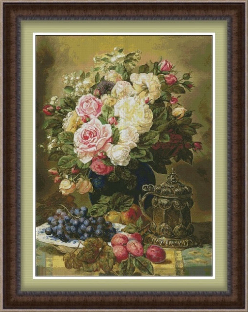 Набір для вишивання хрестиком LadyDi Натюрморт з виноградом і сливами Н-001