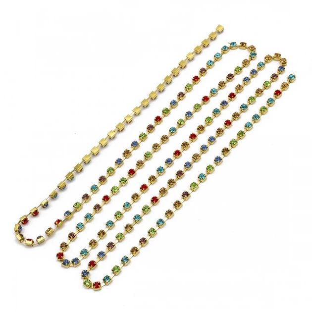 Ланцюг Латунь зі Стразами 2.8мм, Клас А, Золото, Стрази Різнокольорові, Ширина 2.8мм, близько 285шт/1.5м