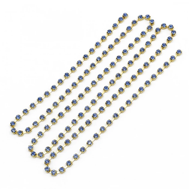 Ланцюг Латунь зі Стразами 2.8мм, Клас А, Золото, Стрази Лайт Сапфір, Ширина 2.8мм, близько 285шт/1.5м