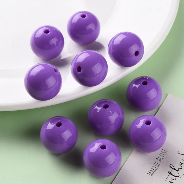 Намистини Акрилові Круглі Непрозорі, Темна Орхідея, 20х19мм, Отвір 3мм, 10 шт