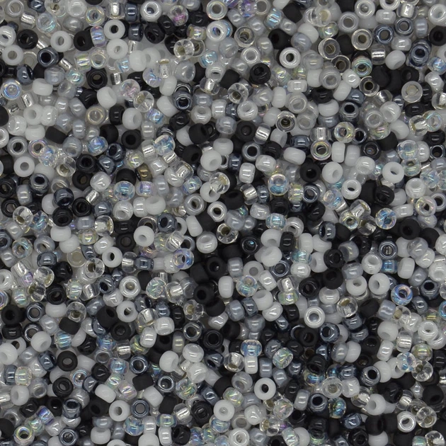Бісер японський Miyuki круглий RR 15/0 №MIX23, Мікс чорно-білий, 5 г (BIS-045859)