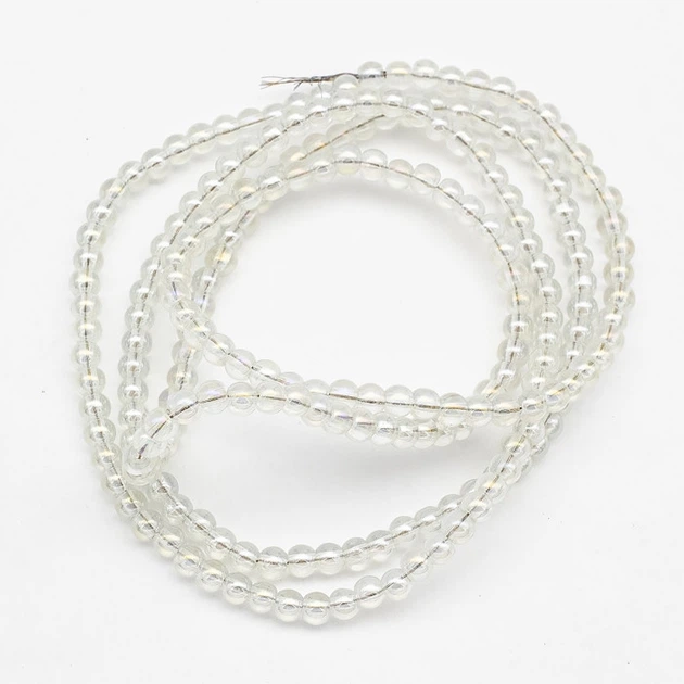 Намистини Скляні Гальванічні, Прозорі, Круглі, АВ колір, 4х4.5мм, Отвір 1мм, близько 190шт/29см/нитка