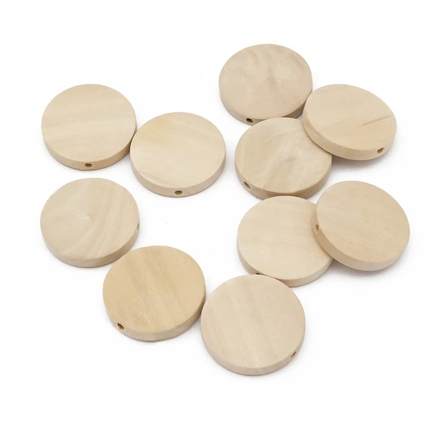Намистини Дерев'яні, Натуральні, Круглі Плоскі, Бежевий, 25х5мм, Отвір 2мм, 10 шт