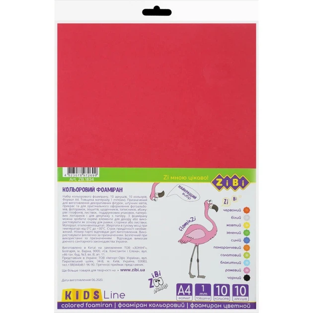 Набір кольорового фоамірана ZB.1834 А4, 10 кольорів 1 мм