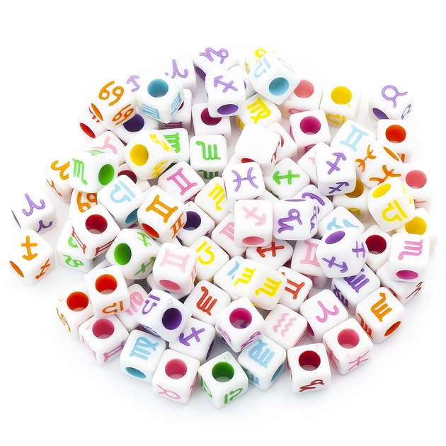 Намистини куб Знаки зодіаку 7х7 мм +-25 г Білий з Різними кольорами