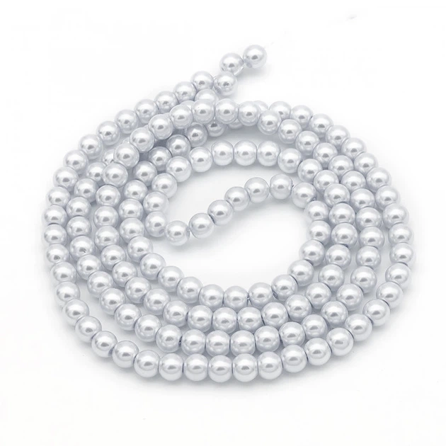 Перли Намистини Скло, Глянцеві, Круглі, Світло-сірий , 6-7мм, Отвір 1мм, близько 125шт/75см/нитка