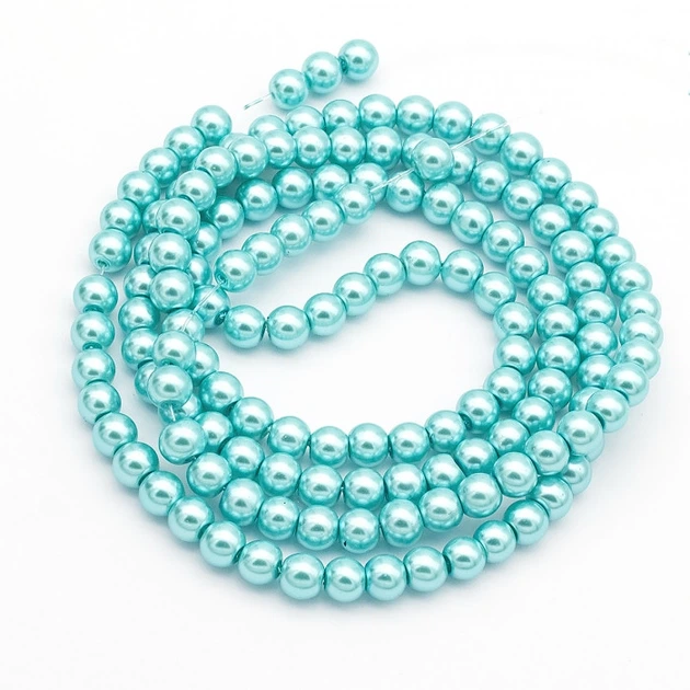 Перли Намистини Скло 6-7мм, Глянцеві, Круглі, Блакитний, 6-7мм, Отвір 1мм, близько 125шт/75см/нитка
