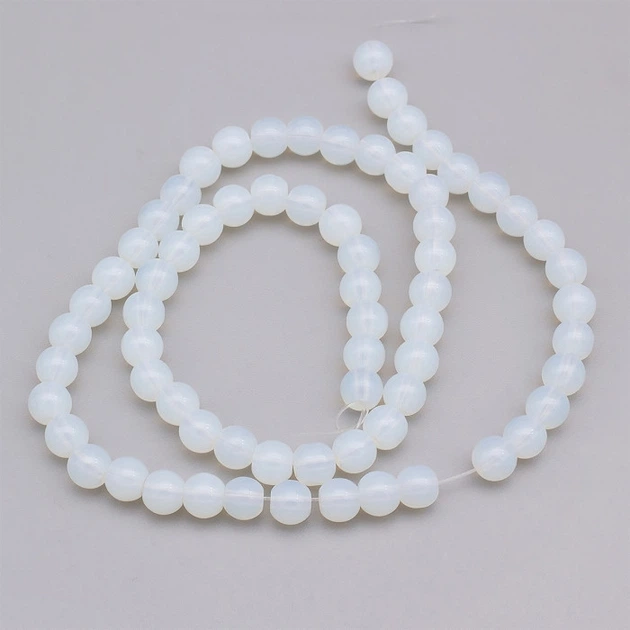 Намистини Синтетичний Опаліт класу АА, на Нитках, Круглі, Білий, 6мм, Отвір 1мм, близько 50шт/37.5см/нитка