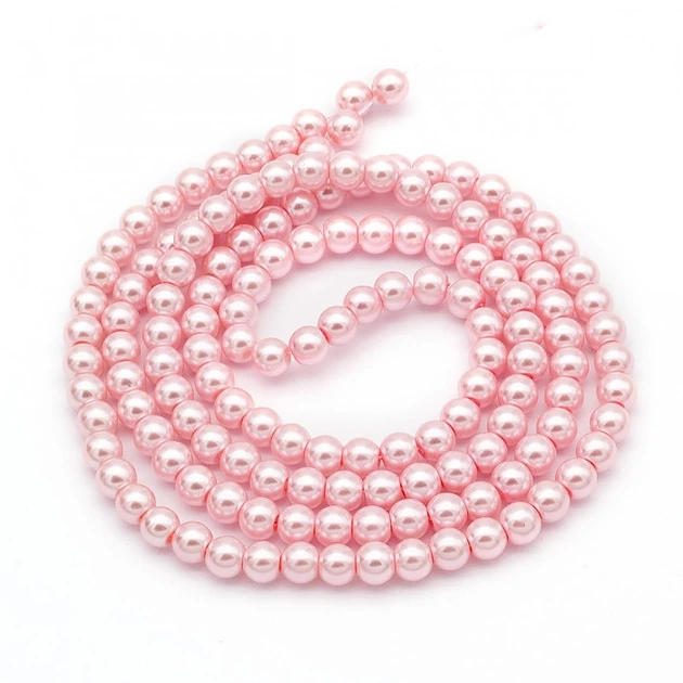 Перли Намистини Скло, Глянцеві, Круглі, Рожевий, 6-7мм, Отвір 1мм, близько 125шт/75см/нитка