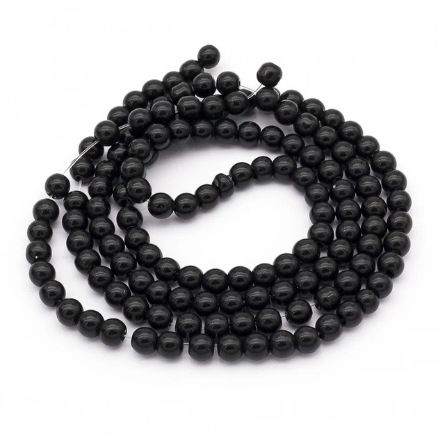Перли Намистини Скло, Глянцеві, Круглі, Чорний , 6-7мм, Отвір 1мм, близько 125шт/75см/нитка