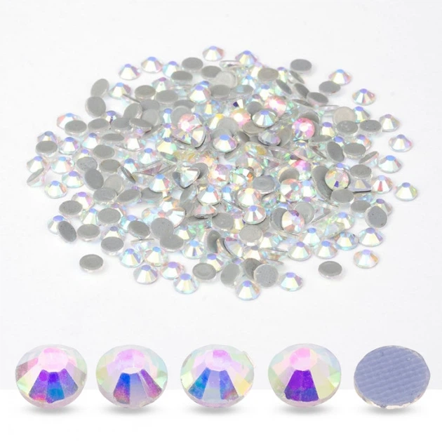 Скляні Стрази Термоклейові, Клас AA, Круглі Грановані, Плоскі ззаду, Кристал АВ, 4.6~4.8мм, 144 шт