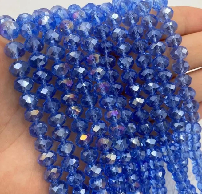 Намистини кришталеві Рондель 6х4 мм світло-синій прозорий з АВ (уп.90-95 шт)