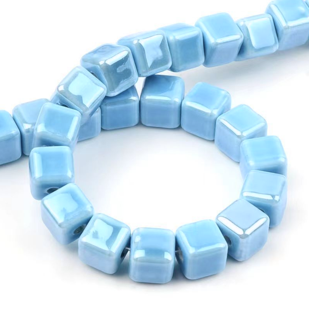 Намистини Куб керамічні 10х10 мм 5 шт. Блакитний (КБ1010д21)