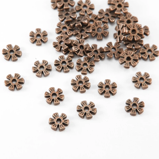 Намистини-Роздільники, Біжутерний Сплав, Квітка, Плоскі, Колір Мідний, 8х8х2мм, Отвір 3мм, 50 шт