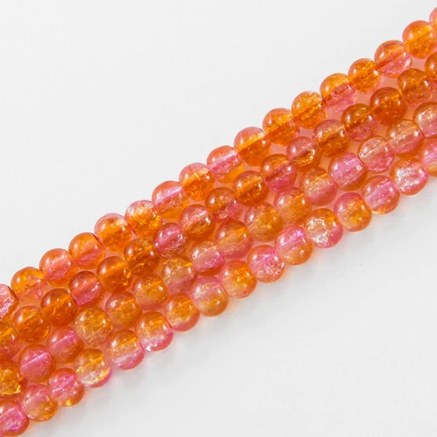 Намистини Скло Кракле 4мм, Двоколірні, круглі, Помаранчевий A41, 4мм, Отвір 1мм, близько 200шт/80см/нитка