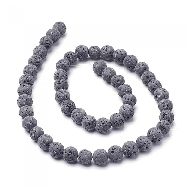 Намистини Натуральна Лава, на Нитках, Круглі, Нешліфовані, Сірий, 6мм, Отвір 1мм, близько 58шт/37см/нитка