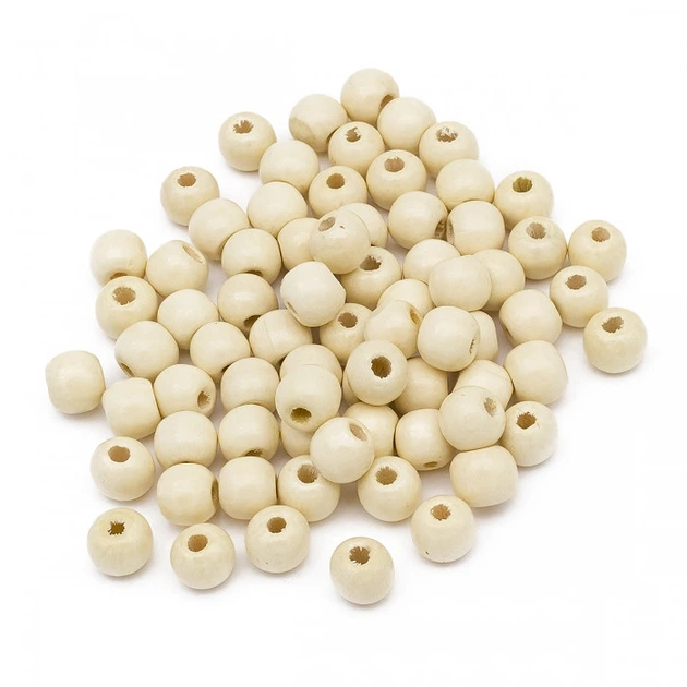 Намистини Дерево Пофарбовані, Круглі, Бежевий, 12х11мм, Отвір 4мм, близько 85шт/50г