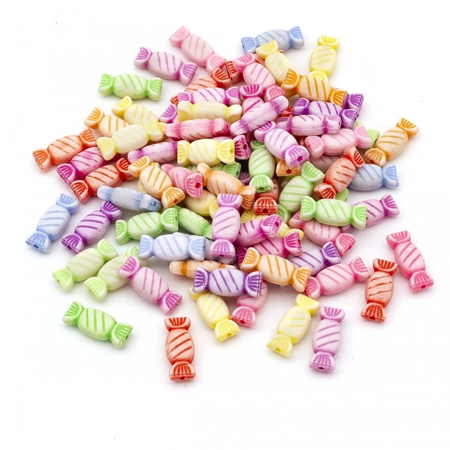 Намистини Акрил Цукерки, Крафт Стиль, Мікс, 7x15x5мм, Отвір 2мм, близько 115шт/50г