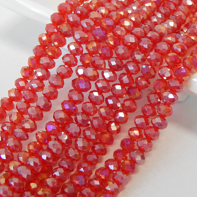 Намистини кришталеві Рондель 6х4 мм червоний прозорий з АВ гранями (уп.90-95 шт)