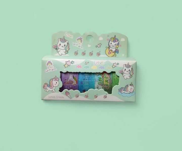 Скотч декоративний Єдиноріг 5 шт ширина 1,5 см зелена упаковка