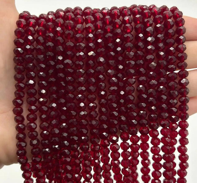 Намистини кришталеві Рондель 6х4 мм бордовий прозорий (уп.80-90 шт)