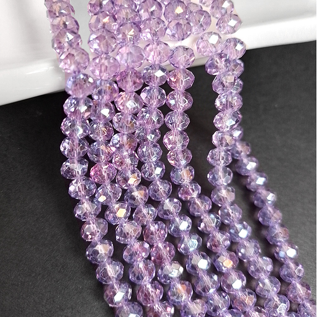 Намистини кришталеві Рондель 6х4 мм бузковий прозорий з АВ (уп.90-95 шт)