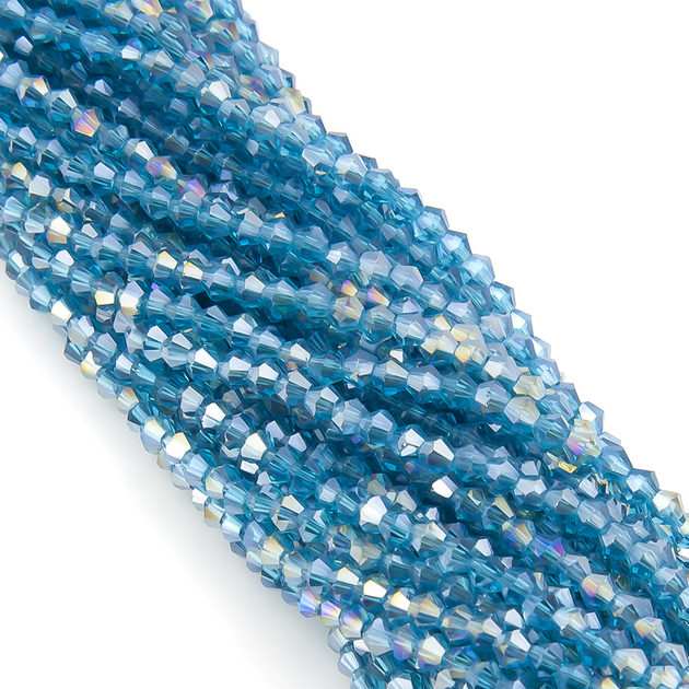Намистини з кришталю на нитці у формі біконуса з огранюванням 3х2.3 мм +-160 шт Блакитний райдужний (БИ0002к71)