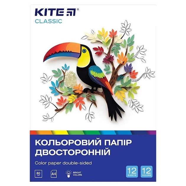 Папір кольоровий двосторонній Kite Classic А4 12 кольорів 12 арк (K-287)