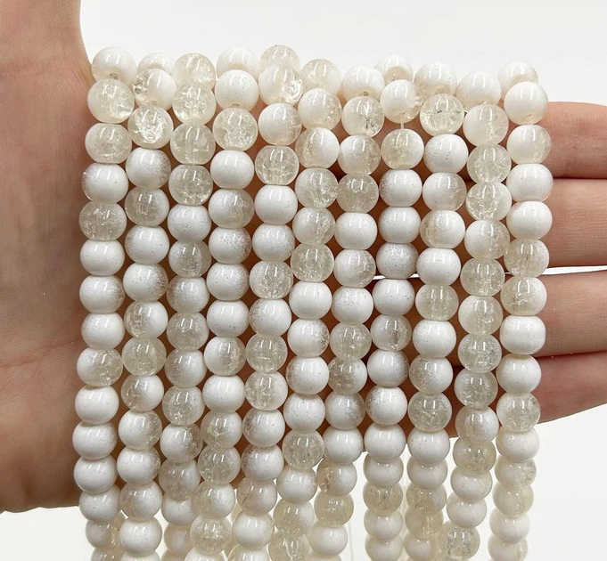 Скляні бусини "Бите стекло" / Упаковка 100 шт / -8мм / Прозорий з білим