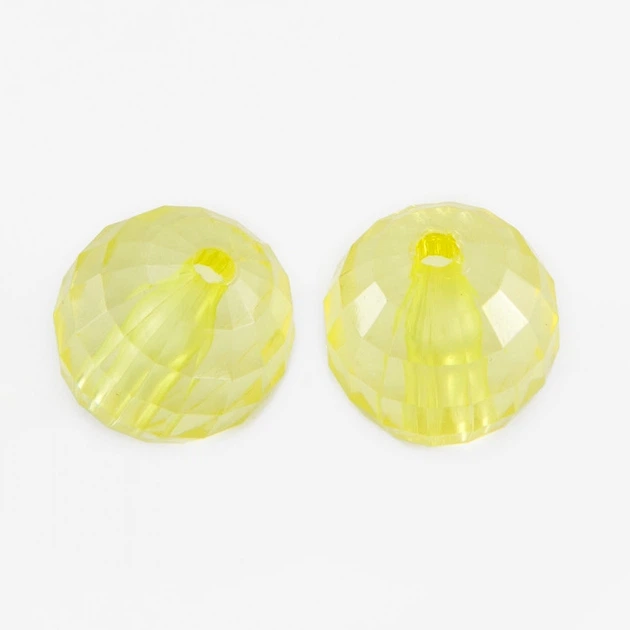 Намистини Акрилові Прозорі, Грановані, Круглі, Жовтий, 16мм, Отвір 3мм, близько 20шт/50г