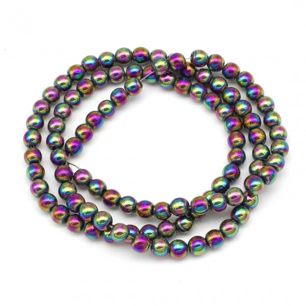 Намистини Синтетичний Гематит Круглі Клас А, Мультиколір, 4мм, Отвір 1мм, близько 90шт/37.5см/нитка
