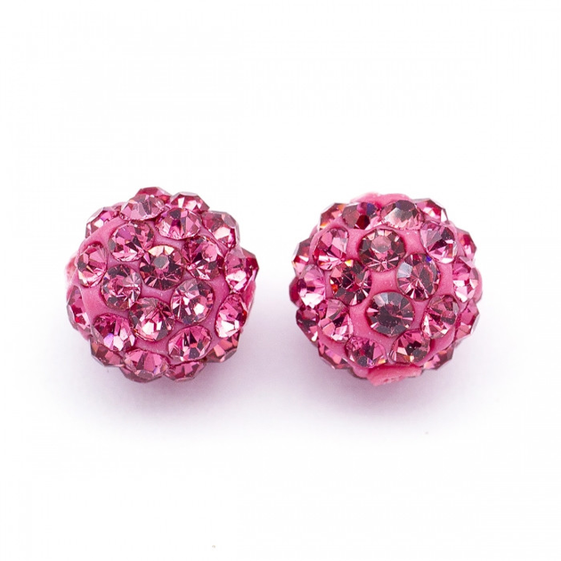 Намистини Шамбала зі Стразами, Клас А, з Полімерної Глини, Круглі, Рожевий, 8мм, Отвір 1.5мм, 2 шт