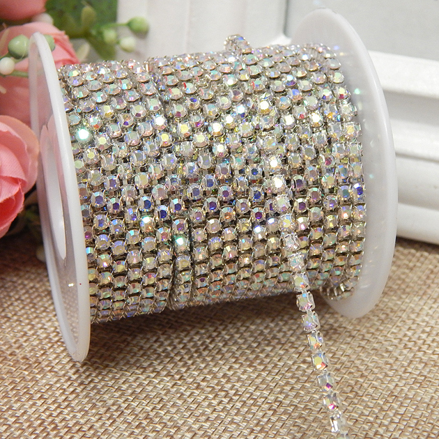 Стразовий ланцюг SS12, основа-срібло, 3,2 мм, хамелеон АВ, 50 см